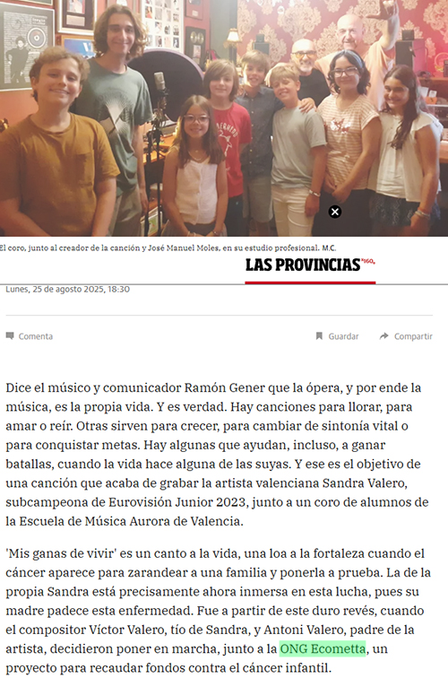 Clica sobre su imagen y regala este año 2025 su primer álbum físico "Cómo Maléfica". Promoción recomendada por la Asociación Ecometta. Instagram Spotify Deezer YouTube VIDEOCLIP FIESTA EN EL JARDÍN La Asociación Ecometta junto a Meteo-Música colaboran con la iniciativa musical solidaria contra el Cáncer ![]() |